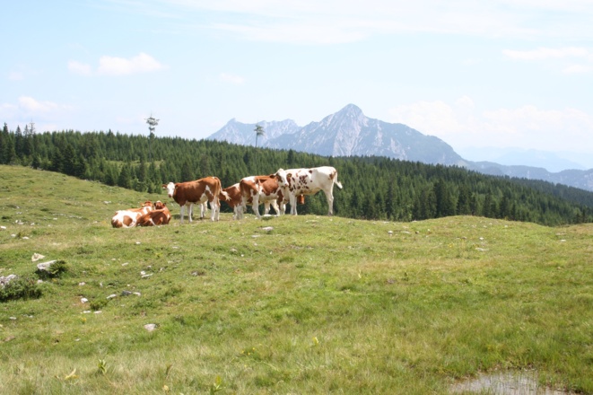 - Kühe auf der Alm sind oft neugierig. Durch die Mutterkuhhaltung entwickeln sie einen ausgeprägten Trieb, ihre Kälber zu schützen. Bewegen Sie sich auf Kuhweiden also ruhig, halten Sie mindestens 20 m Distanz zu den Tieren und streicheln Sie keinesfalls Kälber! Bei Drohgebärden (Scharren, Stampfen) langsam rückwärts weggehen (nicht den Rücken zuwenden). Hunde an die Leine, sie dürfen Kühe nicht verbellen oder gar jagen. Bei einem Angriff muss man sie unbedingt von der Leine lassen.