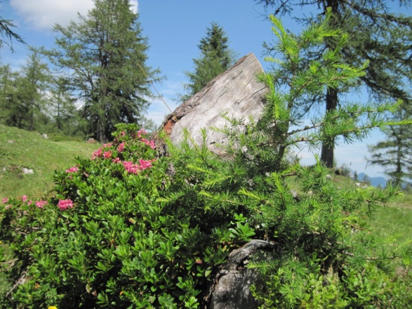 Der Abstieg erfolgt auf dem nun besser ausgetretenen Pfad über den steilen Südosthang (Jägerstand) zu einem kleinen Plateau mit einigen Dolinentrichtern und urigen Lärchen, wo Sie eine Forststraße queren. Unterhalb davon erreichen Sie die bewirtschaftete Pitscherbergalm (1.449 m). Kurz auf der Forststraße weiter und dann links durch den Wald zur weiten Wiese der Labenbergalm hinab. Geradeaus ist ein kurzer Abstecher zur bewirtschafteten Lienbachhütte (1.431 m) am Fuß des Labenberges (1.642 m) möglich. Der Salzkammergut Trail führt dagegen mit der Nr. 840 links über einen 2 km langen, teils freien und teils bewaldeten Rücken zur Postalm (1.346 m) hinüber. 3:00 h