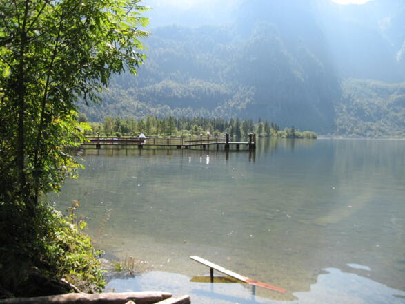 Von Hallstatt fahren Sie mit dem Linienschiff über den Hallstätter See zur Bahnstation Hallstatt. Herrlicher Rückblick zum Bergwerksort! Von dort wandern Sie auf dem Ostuferweg nach rechts. Die breite Trasse führt im Auf und Ab hinter dem Schloss Grub vorbei. Einer seiner Besitzer, Christoph Eyssl, verfügte im Jahre 1668, dass nach seinem Tod sein Sarg alle 50 Jahre über den See gerudert werden solle – diesem Wunsch wurde bis ins 19. Jahrhundert hinein entsprochen. Nach 45 Minuten Gehzeit gelangen Sie nach Obertraun (513 m).