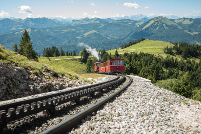 Die steilste Dampf-Zahnradbahn Österreichs führt seit 1893 von St. Wolfgang auf den Schafberg. In 35 Minuten überwindet sie 1.190 Höhenmeter und 5,85 km bis zur Schafbergspitze. Die historischen Zahnraddampfloks zählen zu den ältesten, betriebsfähigen Loks der Welt. Aber auch mit den modernen Dampfloks ist eine Fahrt auf den Schafberg ein unvergessliches Erlebnis. Der Schafberg gilt als schönster Aussichtsberg im weltberühmten Salzkammergut. Bei klarem Wetter hat man einen 360°-Panoramablick über die glitzernden Seen des Salzkammerguts und des Alpenvorlands mit dem Wolfgangsee, Irrsee, Mondsee, Fuschlsee und dem Chiemsee. Ringsum erhebt sich die majestätische Bergwelt vom Höllengebirge über den Dachstein bis zum Watzmann.