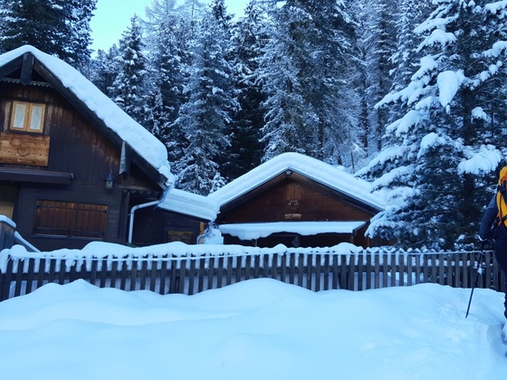 Abfahrt: Wie Aufstieg bis zur Furggesalm. Nun je nach Schneelage (lässt sich im Aufstieg gut beurteilen) durch den Wald abwärts oder gleich ab der Furggesalm den Forstweg (angenehmes Gefälle) bis zum Alpengasthof Bergheim zu folgen.