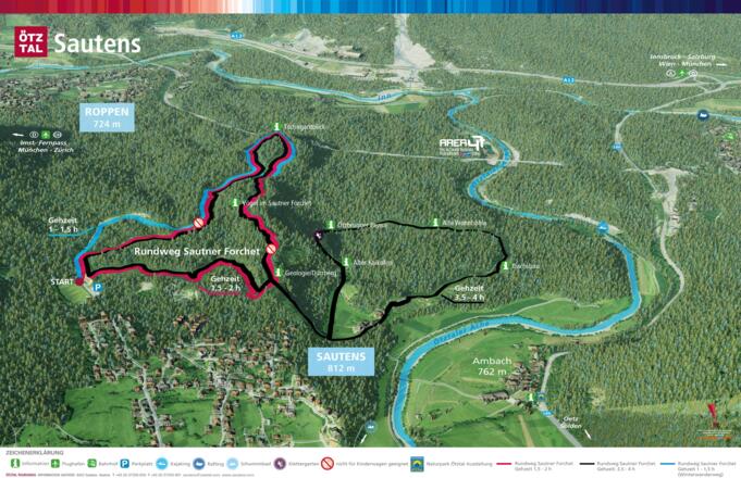 Vor über 3000 Jahren stürzten mächtige Teile des Tschirgants ins Tal und verschütteten den Ausgang des Ötztals. Heute ist das Gebiet eine kleine, ursprünglich belassene Naturoase im sonst intensiv besiedelten Tiroler Inntal. Die großteils bewaldete Fläche birgt ruhige Plätze zum Verweilen, reiche Artenvielfalt und ist umrankt von Sagen und Mythen. Durch diese mystische Landschaft führen Rundwanderwege durch das Sautner Forchet vorbei an spannenden Kulturpunkten (Kalkofen, Wohnhöhle, …) und einigen Lehrtafeln über das Tierreich und die Geologie.