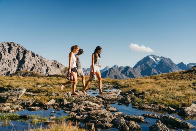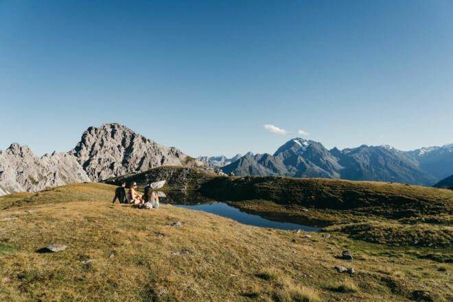 Eindrucksvoll kann man hier die unterschiedlichen Gesteinsformen nebeneinander sehen: die ruhigen Formen des Urgesteins mit den saftigen Böden und der üppigen Vegetation, haarscharf daneben die markante Trennlinie zu den fahlgrauen Schutthängen des Kalkgesteins, in denen sich nur spärlich einige Blumen und dürftiger Graswuchs das Leben sichern. Die Wanderung bietet wunderbare Ausblicke!Von der Bergstation der Schlicker Bergbahnen am Kreuzjoch führt der Höhenweg angenehm ansteigend in wunderbarem Panorama hinauf zum Niederen Burgstall und weiter zum Schlicker Schartl (2.456m). Von hier ist der See in wenigen Minuten erreicht. Die Gehzeit zum See beträgt ca. 2 Stunden. Als Rückweg nach Fulpmes bietet sich der Abstieg über die Schlicker Alm an. Der Panoramasee, welcher am Weg zur Mittelstation "Froneben" liegt, bietet eine schöne Aussicht. Eine weitere Wandermöglichkeit ist der Rückweg über die Starkenburger Hütte zurück zur Bergstation Kreuzjoch. Zur Einkehr laden die Schlicker Alm, Froneben Alm, Panoramarestaurant Kreuzjoch und die Starkenburger Hütte.