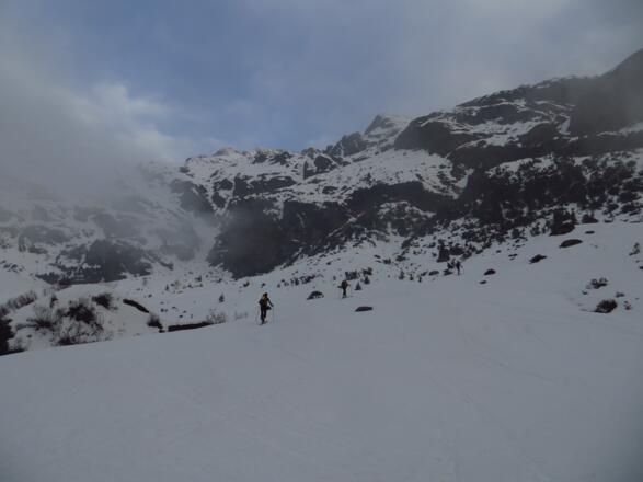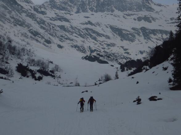 Abfahrt: Entweder entlang der Anstiegsroute oder, wie dieser Tour hinterlegtem Track folgend, nur bis zur Magdeburger Hütte, hier sich dann rechts haltend über einige enge und steile Rinnen hinunter zum Talboden, wo man wieder auf den Forstweg trifft. Über diesen zurück zum Ausgangspunkt.