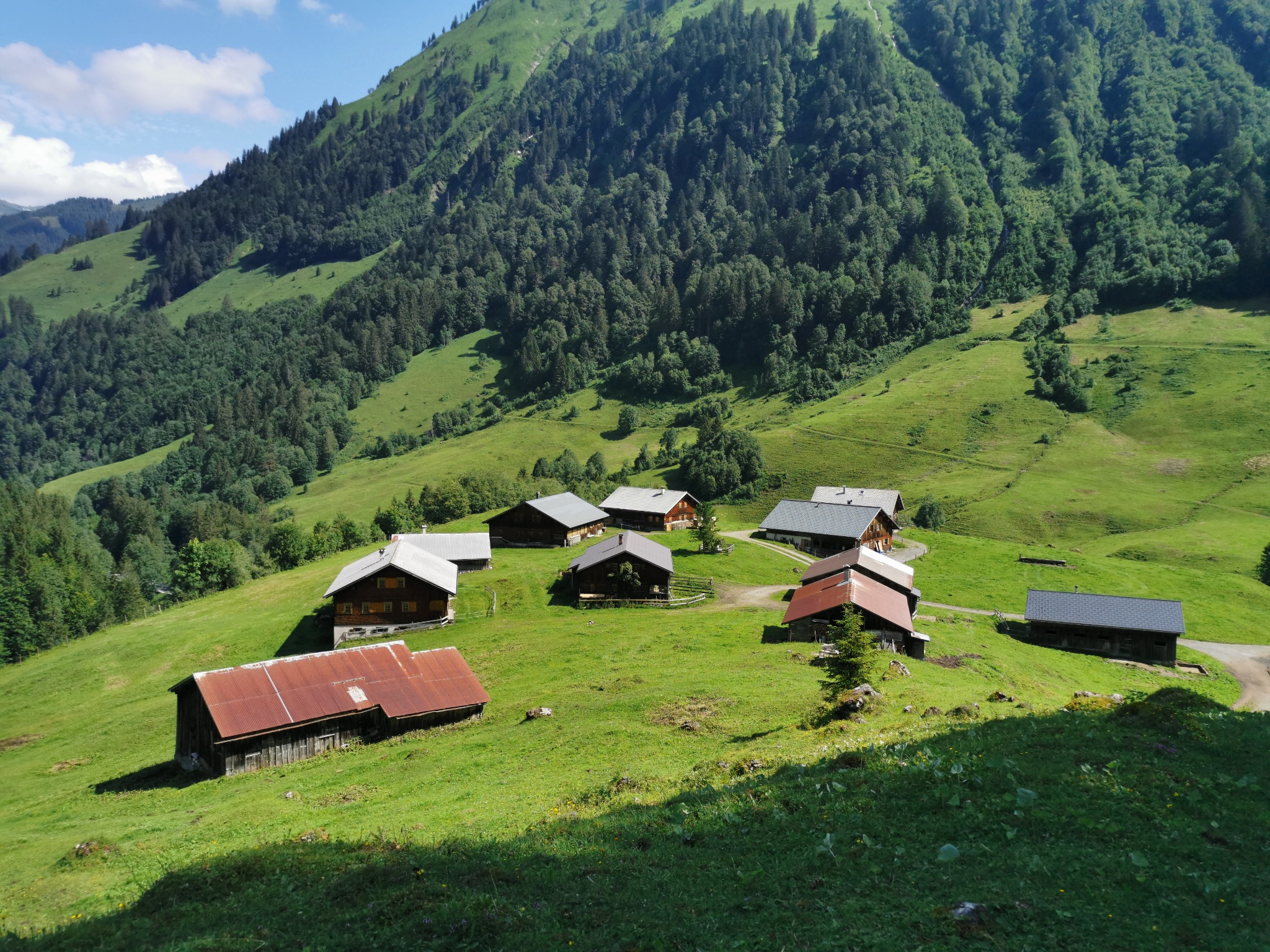 Eine gemütliche Wanderung von Schoppernau bis nach Hinterhopfreben. Zurück auf demselben Weg oder mit dem Landbus Bregenzerwald.