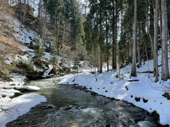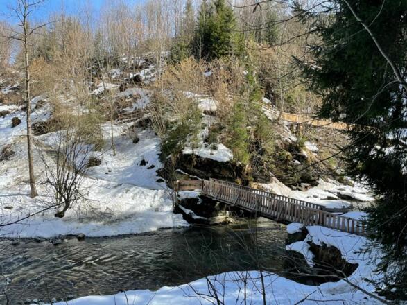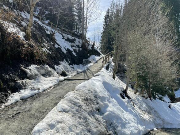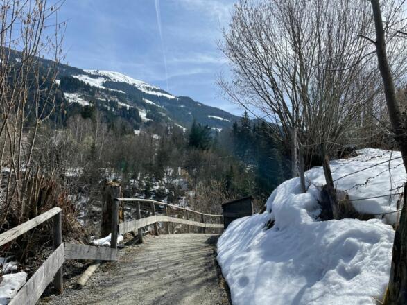 Weiters folgen wir den Weg Richtung Alte Wacht, vorbei an den Siedlungshäusern der Kupfstattgasse. Wir folgen den Wegschildern Richtung Oberhausen/Hechenmoos der Weg führt uns vorbei an malerischen Bauernhäusern und Kapellen. Am Wegschild Richtung Schwimmbad biegen wir rechts ab und gelangen direkt am Schwimmbad vorbei. Hier wird der Weg etwas steiler er führt uns serpentinenartig nach unten dort finden wir einen wahren Kraftplatz, schön idyllisch und mit fließendem Bach. Serpentinenartig geht es dann auch wieder nach oben. Von hier aus folgen wir den Weg wieder nach Jochberg zu unserem Ausgangspunkt zurück.