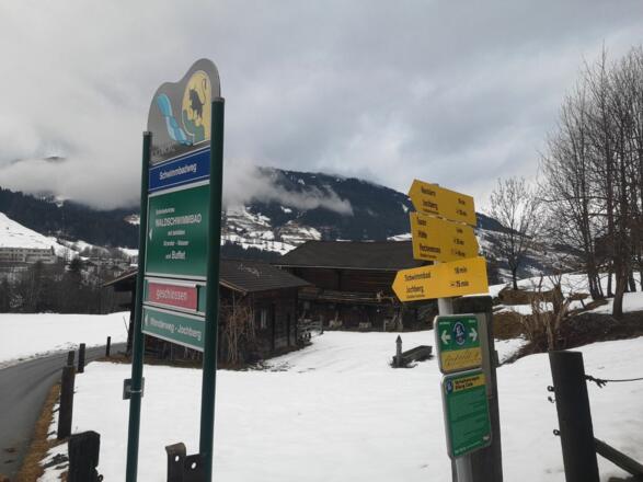 Start unserer einfachen Rundwanderung ist der Wander - Infoplatz Jochberg. Der Weg führt uns vorbei an der Wagstättbahn wo wir gleich am gut übersichtlichen Zebrasteifen die Straße überqueren.