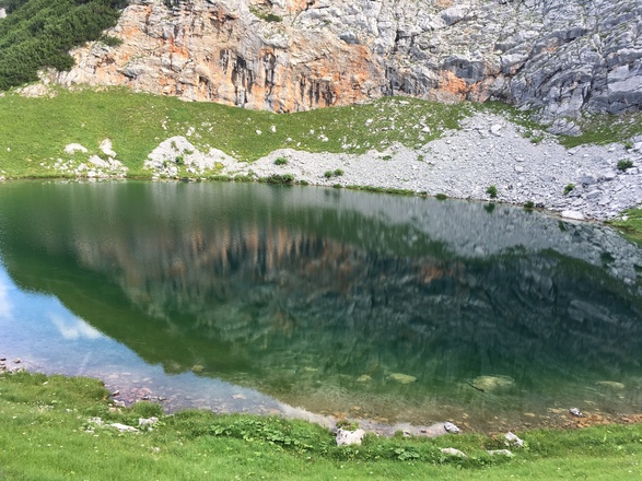 Der See liegt vormittags im Schatten, perfekt um die müden Wanderfüße zu erfrischen.