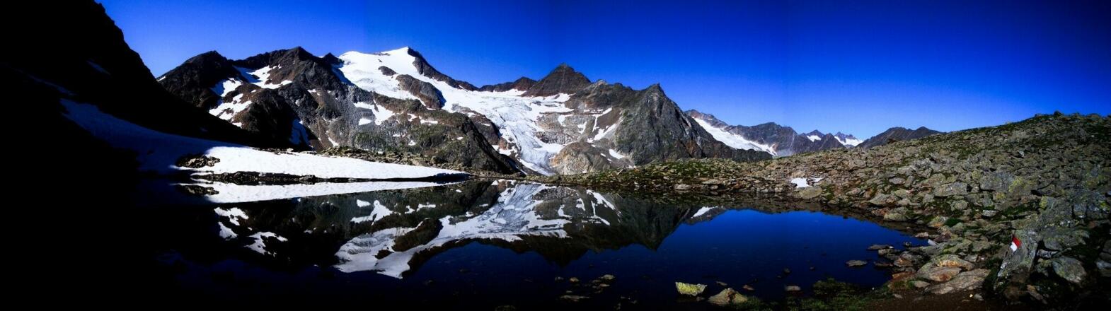 Einfach mal kurz innehalten und zu ihm aufschauen. Vom Grünausee unweit der nördlich gelegenen Sulzenauhütte steht der Wilde Freiger vor einem und ist so schön anzuschauen wie sein italienischer Name „Cima Libera“ klingt. Im hinteren Ridnaun der Stubaier Alpen an der Grenze zwischen Österreich und Italien erhebt er sich im Alpenhauptkamm zwischen Freigerscharte und Pfaffennieder. Die Scharte des Paffennieder trennt ihn vom Wilden Pfaff und dem Zuckerhütl. Sein 3.418 Meter hoher Firngipfel zeigt, dass er zu den ganz Großen im Tal gehört und deshalb auch eine beliebte Spielwiese von Alpinabenteurern ist.