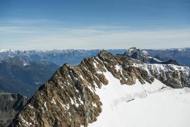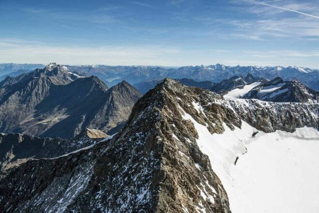 Über Steige, Gletscherhänge und Eisflanken lässt sich der Wilde Freiger von mehreren Seiten und auf viele Arten besteigen. Ebenso imposant wie der Aufstieg ist das Bild aus einem Meer aus Bergkämmen und Wolken, das sich einem von ganz oben eröffnet. Im 360-Grad-Panorama reicht der Blick von den Dolomiten zum Ortler, zu den Ötztaler und Stubaier Alpen bis hin zu den Hohen Tauern.