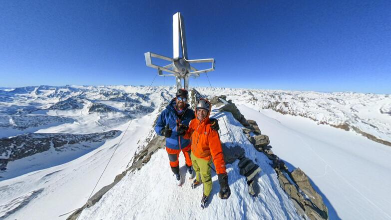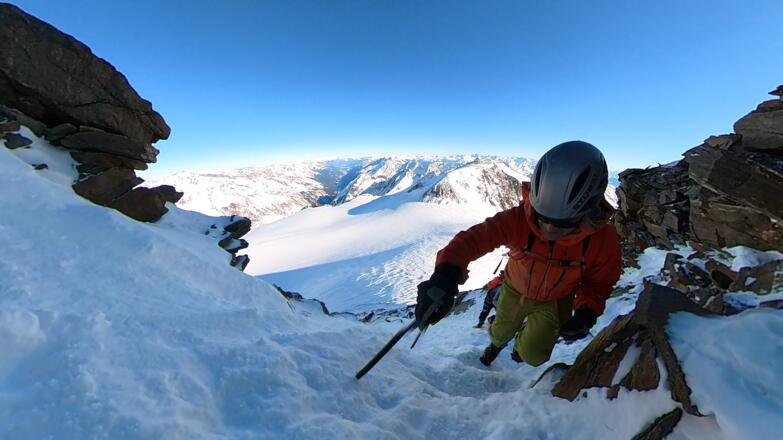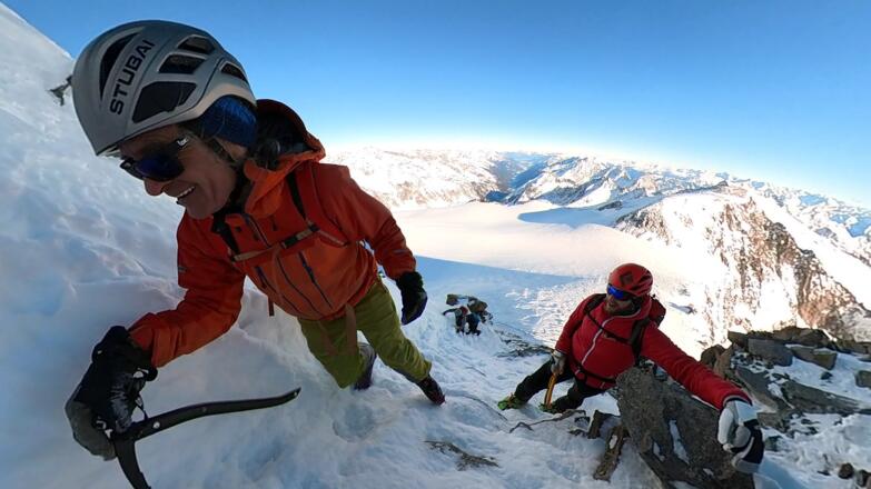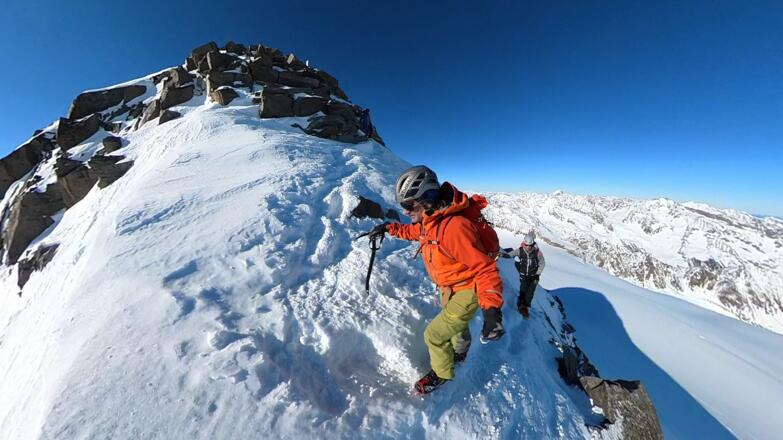 Es können auf dieser beliebten Tour sehr viele Leute unterwegs sein. Besonders in der Steilstufe zum Gipfel kann es zuStaus oder Gegenverkehrsituationen kommen. Mit Steigeisen ist man flexibler und sicherer unterwegs.