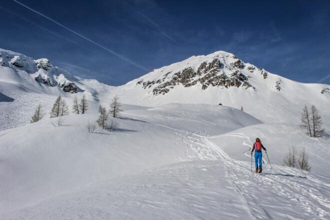 Mittelschwierige Skitour auf das Liebeseck (2.303m) mit herrlicher Aussicht, die alle Tourengeherherzen höher schlagen lässt.