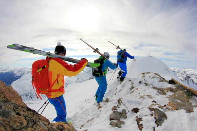 Auf eine sichere Lawinenlage achten, denn dort oben verfrachtet der Wind oft den Schnee.