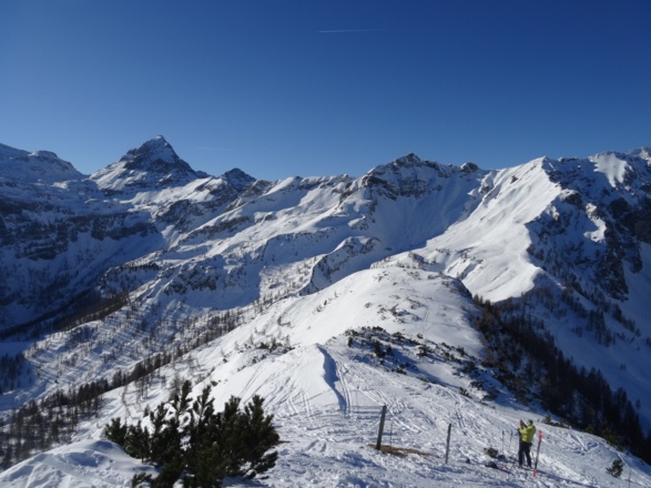 Diese Skitour bietet alles was das Herz begehrt. Lockerer Aufwärmweg, mäßiger Anstieg, schöne Aussicht und eine oft mit Pulverschnee versehene Abfahrt.