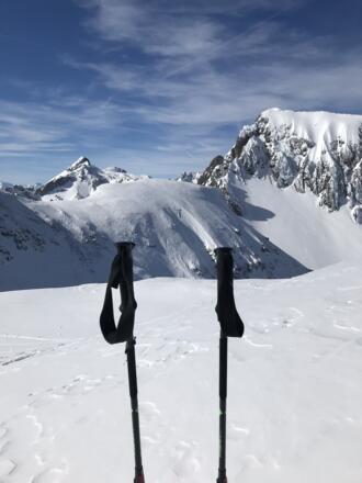 LVS-Ausrüstung, Harscheisen empfohlen, Mobiltelefon, topografische Karte, mehrschichtige Bekleidung, Wechselkleidung, Sonnencreme, Sonnenbrille, Jause.