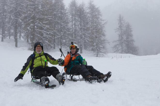 Nur mit passablem Schlittenverleih! Ideal zu entdecken mit einem SNOOC-Schneeschuh-Skischlitten, mit dem Sie enge Kurven fahren und in wenigen Metern anhalten können.