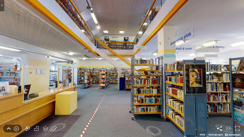 Auf zwei Etagen halten wir rund 38 000 Medien unterschiedlichster Art und Inhalte für Sie bereit.