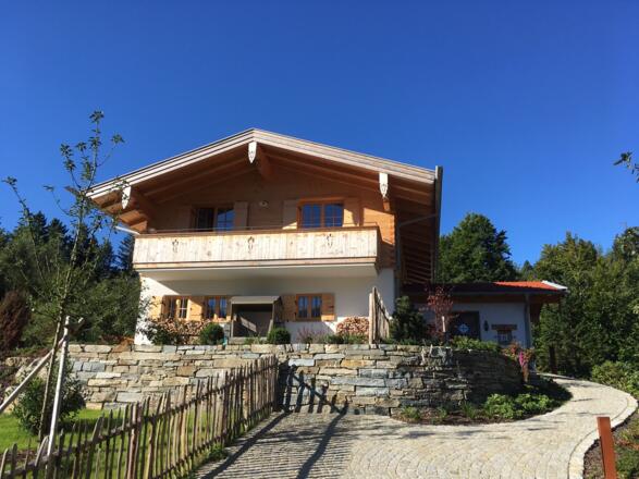 Unsere Ferienwohnung "Bergliebe" liegt im Luftkurort und Bergsteigerdorf Sachrang mitten zwischen Kaisergebirge und Chiemsee und wurde 2017 fertiggestellt. Das Haus liegt erhöht und entstand unter nachhaltigen Gesichtspunkten mit dem Einsatz baubiologisch einwandfreier und regionaler Baustoffe, effizienter Wärmedämmung, Anlagen- und Entwässerungstechnik. Beim Innenausbau wurden lösungsmittelfreie Farben und Lacke verwendet. Massivholzdielen oder Stein; die Inneneinrichtung besteht aus Altholz oder Fichtenholz aus der Region, die mit natürlichen Ölen und Wachsen behandelt sind. Das Haus am Ende einer Sackgasse befindet sich auf 760 Meter Höhe mit Blick über den Ort, direkt an der Prien und zwischen den Hausbergen Spitzstein und Geigelstein. Mit "Bergliebe" bieten wir eine liebevoll ausgestattete, gemütliche Ferienwohnung für Naturliebhaber mit Terrasse, Garten mit Liegewiese, Kachelofen und Sauna. Ein Carport befindet sich am Haus. Wanderwege beginnen direkt vor der Haustüre, die Loipe und kleine Skilifte befinden sich in nächster Nähe.