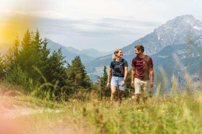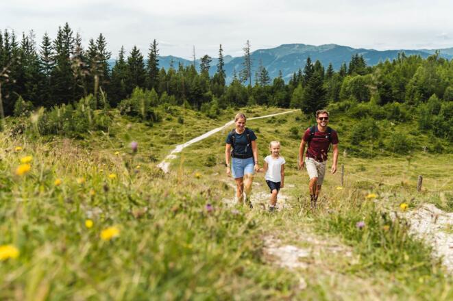 Die Wanderung zur Steinalm bietet für Familien und gemütliche Wanderer eine aussichtsreiche, leichte Tour. Ein Großteil des Weges führt durch teils schattigen Wald, wodurch diese Tour auch im Sommer bestens geeignet ist. Das letzte Stück führt durch saftige Almwiesen. Kühe, Pferde, bunte Blumen und Kräuter lassen kleine Wanderer staunen. Auf der Steinalm werden Wanderer nicht nur mit leckeren Schmankerln, sondern auch von verschiedensten Tieren, wie Hühnern oder Kannichen, empfangen.