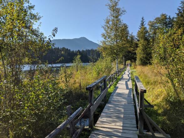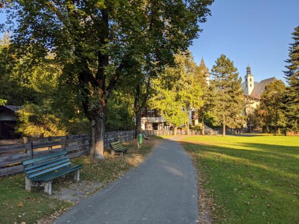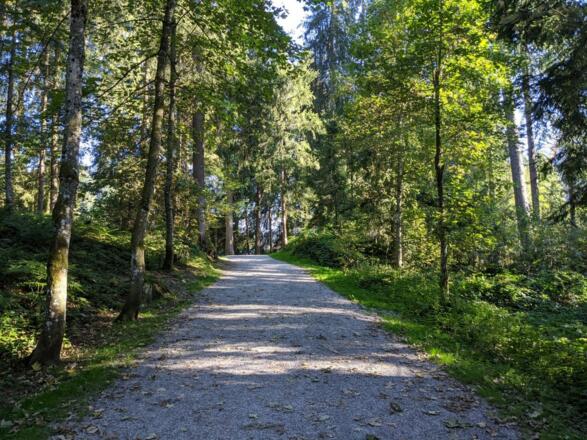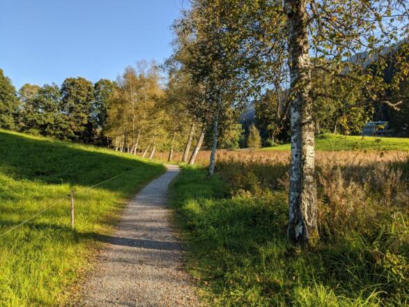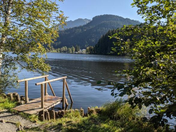 Vom Parkplatz Pfarrau wandern wir über den Lebenberg und den Steuerberg und folgen dort der Beschilderung Schwarzsee, Alpenhotel und Pfarrau Parkplatz.