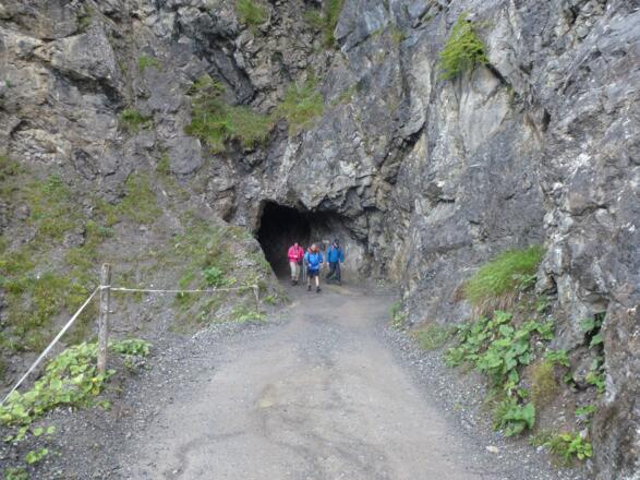 Vom Bauernhof des Hubert Sprenger führt ein Forstweg immer Bergauf durch den Wald bis zu den Naturtunnel des Mister Simms aus England, der diese um die vorige Jahrhundertwende gebaut hat. Die Tunnel sind unbeleuchtet und das durchlaufen ist ein richtiges Abenteuer, besonders für Kinder. Nach den Tunnel kommt man recht schnell über die Waldgrenze. Der Weg führt vorbei an tiefen Schluchten des Sulzlbaches und neben Almwiesen hinauf zur Sulzlalm. Ab der Sulzlalm wird das Gebiet etwas rauher und Alpin. Der weg führt gut gerichtet vorbei an der der oberen Alphütte und dem Melkstand immer bergauf bis zur Materialseilbahn der Simmshütte. Ab dort ist ein Steig der zuerst leicht und zum Schluss steil bergauf zur Simmshütte führt. Die Simmshütte liegt auf 2004 HM und erinnert wegen der Lage etwas an einen Adlerhorst. Nach einer ordentlichen Einkehr gehts auf dem selben Weg wieder retour.
