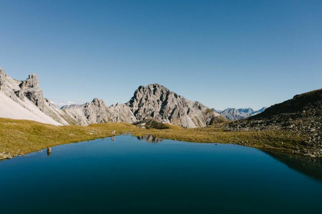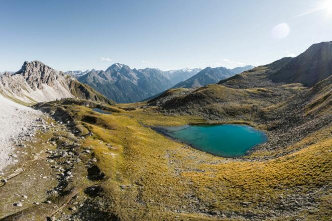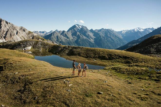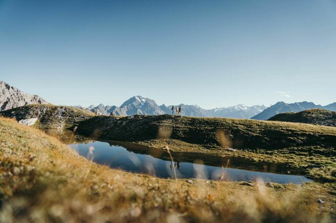 Von den alten Neustiftern wird der Schlicker See ganz einfach als „der See“ bezeichnet. Mit etwa 3.900 Quadratmetern ist er der kleinste der Stubaier Bergseen. Blickt man vom Seejöchl auf den Schlicker See hinab, kann man sehr genau die Grenze zwischen dem Dolomit der Kalkkögel und dem Ötztal-Stubai-Kristallin ausmachen. Hier laufen die ausgedehnten kleinsplittrigen Kalk-Schutthalden in die sanften mit saftigem Grün bewachsenen Kuppen des Silikat aus. An diesem geologischen Grenzgebiet befindet sich ein Hotspot an pflanzlicher Artenvielfalt, der seinesgleichen sucht. Der Schlicker See liegt schon ganz in den behäbigen Blockfeldern des Silikats eingebettet. Zwischen den Spalten dieser Felsblöcke finden sich immer wieder Murmeltiere ein. Mit lauten Pfiffen warnen die Tiere die zahlreichen Mitglieder ihrer Kolonie vor unerwünschten Eindringlingen. Die Unterwasserwelt des Sees wird von eingesetzten Saiblingen belebt, die auf Insekten als Nahrung angewiesen sind und dementsprechend kleinwüchsig bleiben. Dennoch vermehren sich diese Überlebenskünstler kontinuierlich und bilden heute einen stabilen Bestand.
