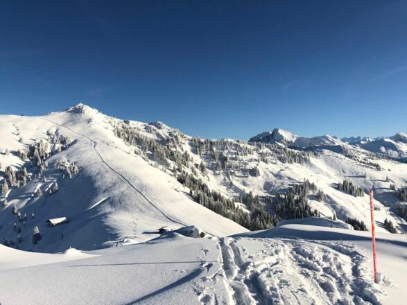 Landschaftlich wunderschön und angenehmer Skitourenaufstieg entlang der Skiroute 52. Von der Bichlalm Bergstation führt eine Pistenraupenspur des Raupenshuttles bis kurz unterhalb des Gipfels des Stuckkogels (1.880m). Die Aufstiegsroute folgt der präparierten Spur. Entlang der ersten 100 m ab der Bichlalm kann bei genügend Naturschnee das Steilstück in Serpentinen umgangen werden. Bei sehr schlechter Sicht im Bereich oberhalb der Waldgrenze empfiehlt sich der Verzicht auf den Aufstieg.