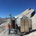Brotzeitbank an der Biwakschachtel in der Watzman-Ostwand