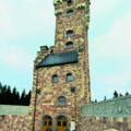 Der Aussichtsturm Backöfele und der Turm der ehemaligen Streitkräfte auf dem Schneeberggipfel.