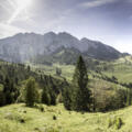 Predigtstuhl, Fleischbank, Totenkirchl (von links nach rechts) und im Hintergrund rechts die Elmauer Halt