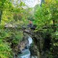 Radlerin am E-Wasserkraftwerk in Schöngeising