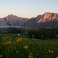 Blick von der Kräuterwiese zur Schmidalm und Kampenwand