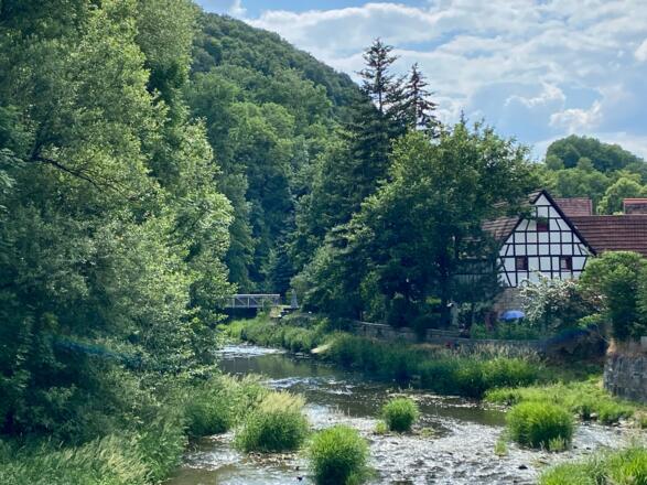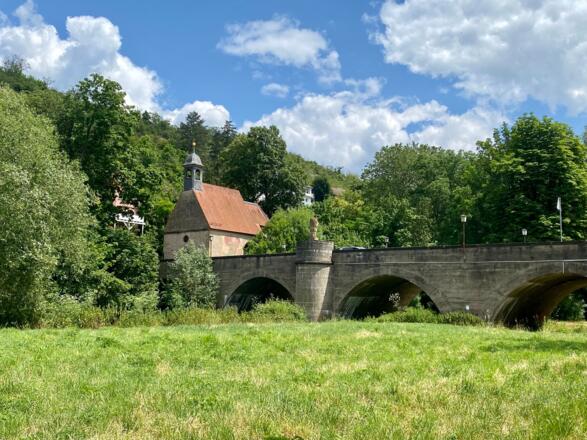 Vom Parkplatz geht´s den Tauberradweg entlang. Es gibt viele Baustellen und immer wieder verfahre ich mich und muß nach dem Weg fragen. Es lohnt sich durch das schöne Tauberzell zu fahren. Wir treffen uns an der Barbarossabrücke im Gasthaus unter den Linden. Danach geht´s steil hoch nach Rothenburg. Wer´s einfacher will sollte den Tauberradweg vorbei an mehreren Mühlen und Brücken bis zur Haltenmühle weiter fahren und dort flach Richtung Hallenbad nach Rothenburg fahren.