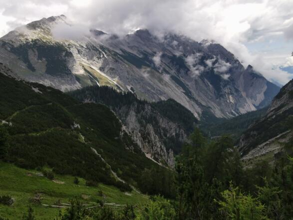 Über die Almlandschaft der Thaurer Alm geht es über das Törl hinab in das sagenumwobende Halltal.