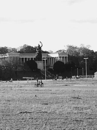 Rad- und Fußweg entlang der Theresienwiese mit Baumallee.