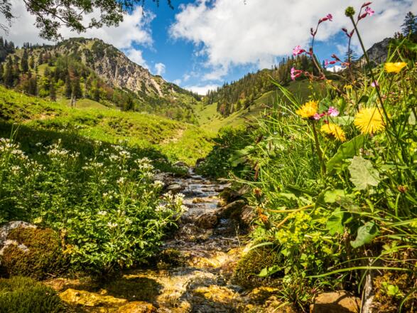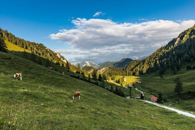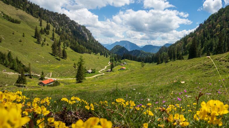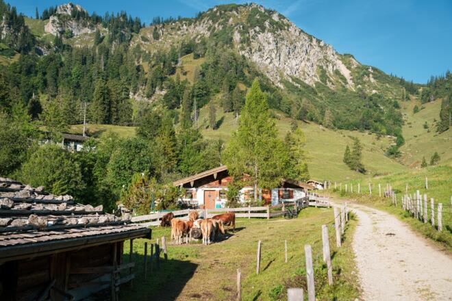 Vorbei an der Glockenschmiede geht’s ständig und auch mal steil bergauf bis die Hochalm der Thorauer Almen erreicht ist. 8 „Kaser“ (Almhütten) verteilen sich über das sanft ansteigende Tal. Über 230 verschiedene Pflanzenarten sorgen für eine außergewöhnliche Artenvielfalt. Das Jungvieh verbringt hier den Almsommer und kommt gestärkt zurück ins Tal. Und für hungrige und durstige Wanderer und Radler wird natürlich auch bestens gesorgt. Almtypische Brotzeiten schmecken hier einfach besonders gut - unbedingt das „Thorau-Geheimnis“ auf der bewirtschafteten Thorau Alm probieren.
