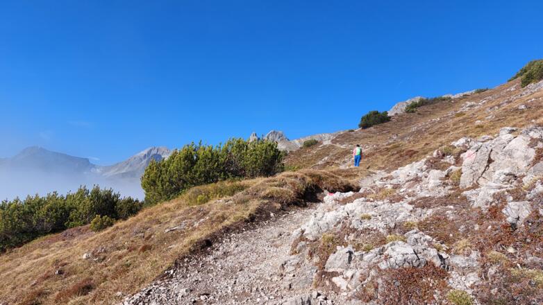 Die Tour kann auch genauso gut in die entgegengesetzte Richtung gemacht werden. Allerdings ist der Weg auf den Gipfel der Roten Wand recht steil, kann bei Nässe sehr rutschig sein und ist im Sommer aufgrund der Südexposition heiß.