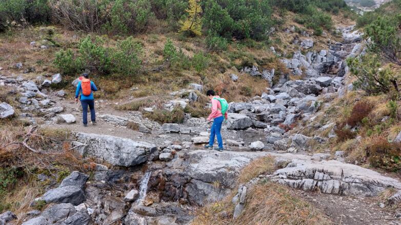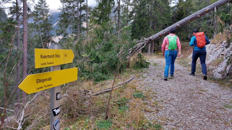 Abgestiegen wird über den selben Weg, bei der Abzweigung zum Balschtesattel halten wir uns links und steigen über den recht steilen Weg ab. An der Waldgrenze gelangen wir zur Söllnerhütte mit Trinkwasserbrunnen. Den Weg ins Tal fortsetzend schließt sich der Kreis am Ende der Forststraße wieder und wir steigen, wie beim Aufstieg, vorbei am Kasermandl ins Tal ab.