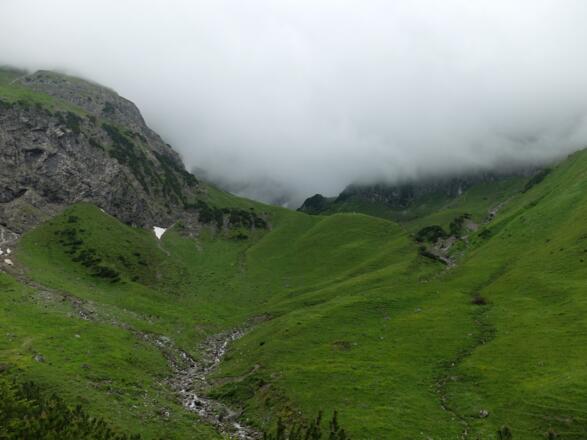 Bei nasser Witterung zwischen Oberschalzbachalpe und Gräsalpe sehr rutschig.