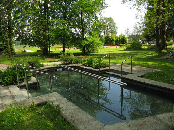 Zurück nach Bad Wörishofen auf dem Radweg wieder Richtung Mindelheim und dann nach ca. 500 m links ab durch die Unterführung nach Kirchdorf. Von Kirchdorf nach Bad Wörishofen (Wassertretstelle am Ortsende beim Sportplatz) weiter nach Bad Wörishofen, vorbei an Therme in südlicher Richtung zur Stadtmitte.