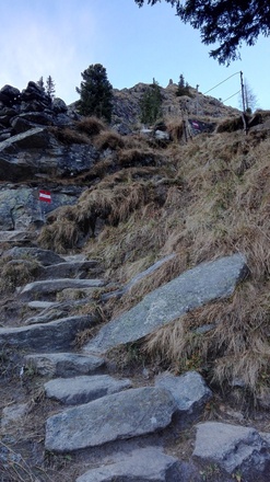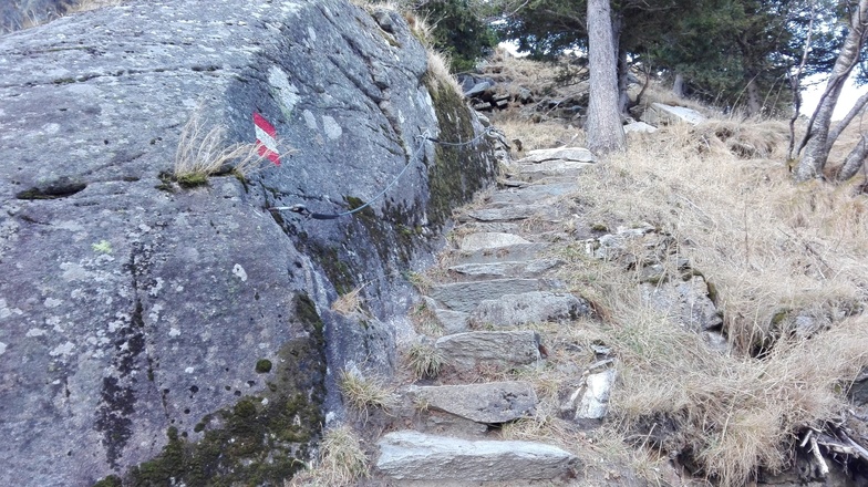 Beim Aufstieg zuerst viele Wurtzeln und einige Holztreppen und Seilsicherungen.Abstieg unschwer,kann als Auffahrt mit Kinderwagen genutzt werden,aber 300hm.