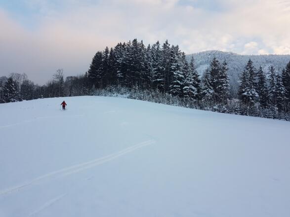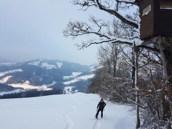 Eine kurze aber sehr abwechslungsreiche Schitour, mit Abfahrt über die gesamten 400 Hm. Auf Grund der niedrigen Höhenlage ist die Tour natürlich nur bei entsprechend guter Schneelage sinnvoll, da sonst im Wald apere Stellen sind. Durch die nördliche Exposition bleibt der Pulverschnee meist länger erhalten.