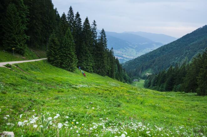Flach gehts vorbei an der Boider Alm (bewirtschaftet) und der Unternberg Alm (bewirtschaftet) zur Bergstation der kleinen Unternberg Sesselbahn. Man könnte sie schon fast als historisch bezeichnen. Und auf der gemütlichen Fahrt ins Tal kann man sich nicht nur den Abstieg sparen, sondern das Miesenbacher Tal in aller Ruhe von oben betrachten.