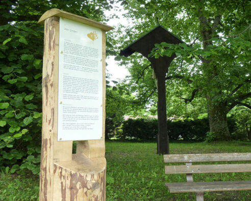Eine Tafel berichtet vom Tränenwunder Anfang des 19. Jahrhunderts, das diesen Aussichtspunkt zur Wallfahrtsstätte werden ließ.