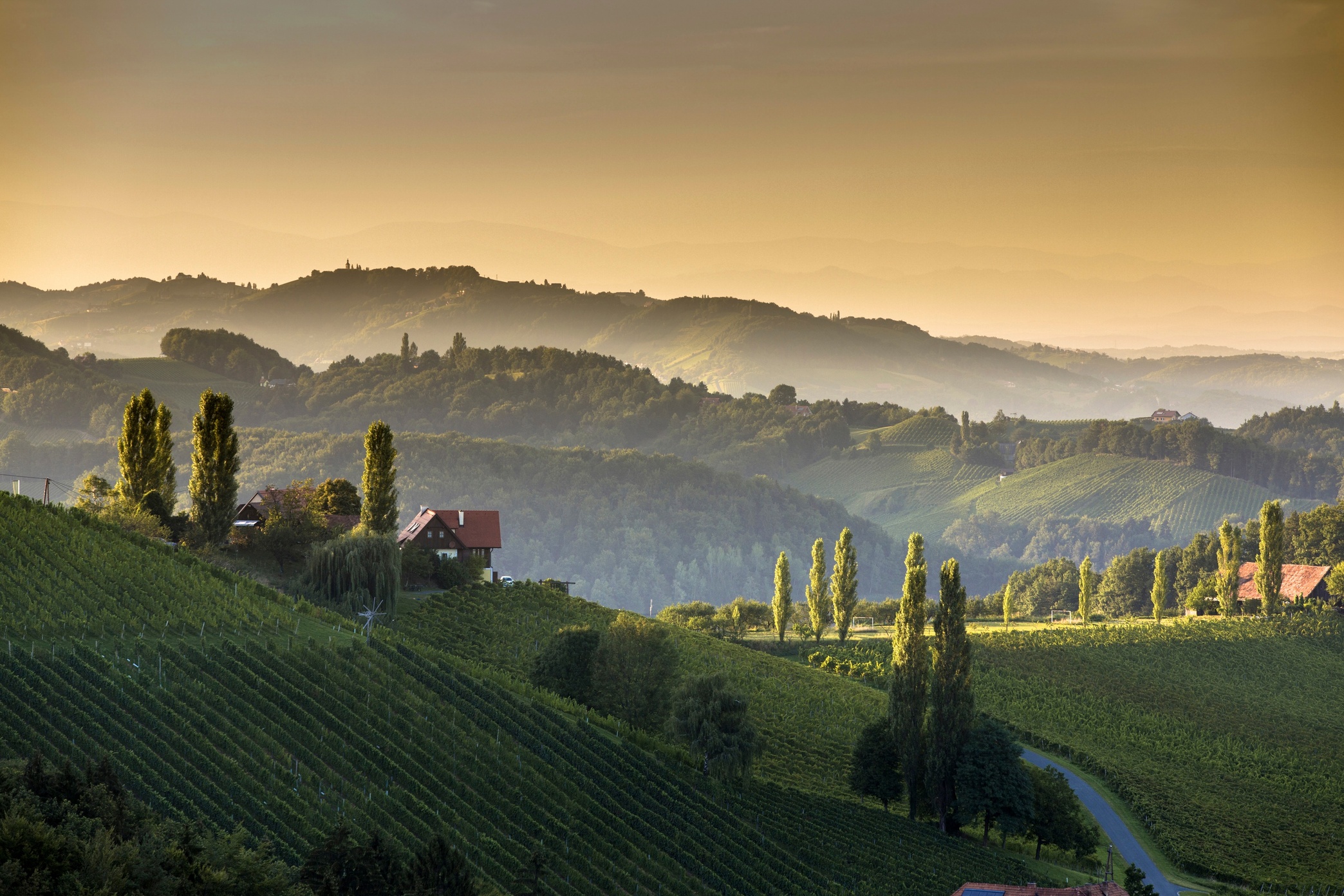 Bevor man über den idyllisch gelegenen Ort Obdach im Zirbenland auf die Koralm, einem langgezogenen Höhenrücken zwischen den beiden Bundesländern Steiermark und Kärnten gelangt, muss man erst den 2.396 Meter hohen in den Seetaler Alpen gelegenen Zirbitzkogel bezwingen. Nach dem Packsattel und der Koralm taucht man dann endlich ins Weinland ab. Beziehungsweise ins Schilcherland, dessen „Hauptstadt“ Deutschlandsberg ist. Und wenn man jetzt behauptet, dass die Gegend ab hier wirtlicher wird, hat das auch mit der steigenden Dichte an aussichtsreichen Weingütern und Buschenschenken, die uns bis nach Leibnitz im Naturpark Südsteiermark begleiten, zu tun.