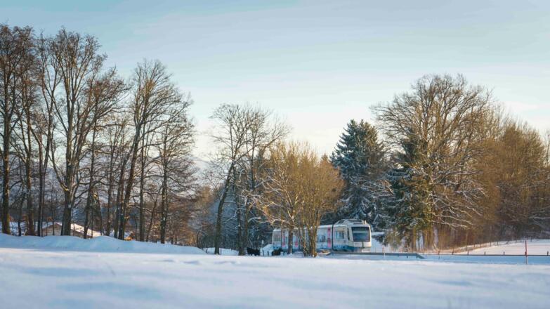 Züge der Bayerischen Regiobahn (BRB) verkehren stündlich ab München nach Agatharied.