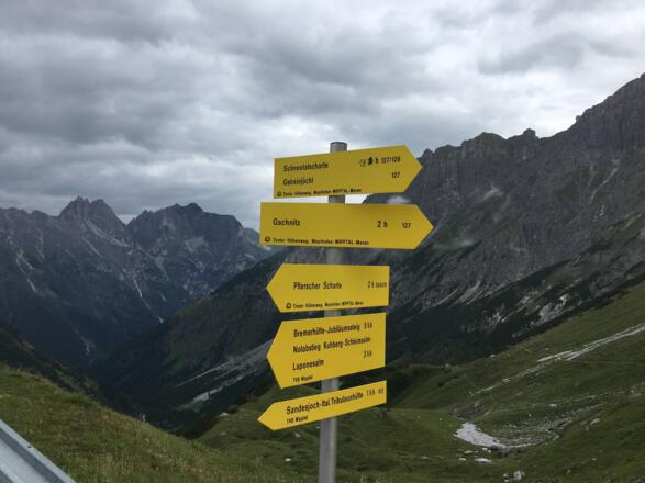 Wenn man auf den Wilden Freiger will, sollte man sich über die Bedingungen informieren…ob eventuell Gretel nötig sind. Bei uns, Mitte August 2017, war das nicht der Fall.