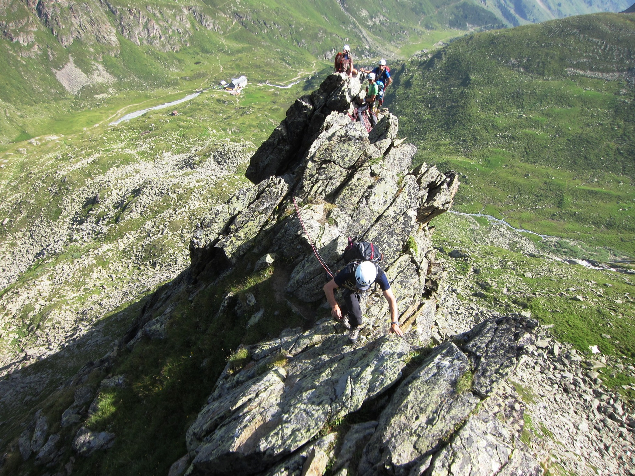 Der "Hüttengrat" ist auch perfekt für Kletterkurse geeignet und bietet vielfältige Möglichkeiten, um den Einsatz mobiler Sicherungsmittel oder das Errichten von Standplätzen zu üben.