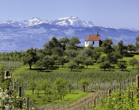 Bodensee-Wanderung über schöne Aussichtslagen (Antoniuskapelle) vorbei an der historischen Hofanlage Milz in Retterschen