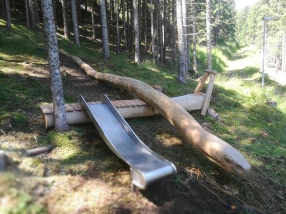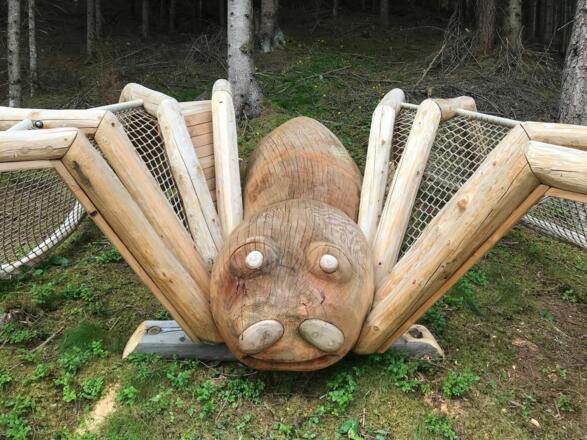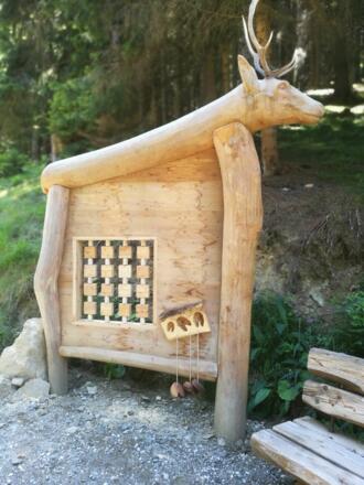 Der Wald ist voll von kleinen und großen Tieren, die in Baumwipfeln oder auch am Boden leben. Viele davon trifft man nur äußerst selten an, weil sie viel zu scheu sind, um in die Nähe von Menschen zu kommen. Anderen begegnet man dagegen häufiger bei einem Spaziergang durch den Wald. An vier Stationen, die am Weg entlangführen, gilt es, die Tiere des Waldes beim Klettern, Spielen oder Staunen kennenzulernen.